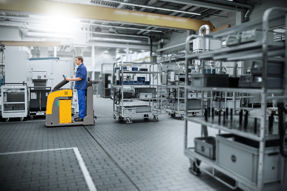 L’economico e compatto EZS 130 è un trattore con operatore in piedi particolarmente stretto, concepito per il traino di rimorchi fino a 3.000 kg. Grazie alla larghezza di soli 600 mm è perfetto per gli spazi ristretti e, grazie alla sua elevata flessibilità, è l’ideale per il trasporto di minuterie in un convoglio di dimensioni compatte. Mediante diverse tipologie di ganci, il trattore può essere adattato senza difficoltà a qualsiasi tipologia di rimorchio. La superficie di carico è espandibile a piacere con l’aggiunta di più rimorchi. Potenza sempre elevata e costante unita alla massima efficienza energetica, garantiscono al motore a corrente trifase da 24 V altissime capacità di movimentazione. Il gancio accessibile con estrema facilità, un’altezza ridotta dell’elettropianale per un carico e scarico senza fatica e lo schienale di sostegno, consentono di lavorare nella massima ergonomia. Il comfort di guida e la sicurezza sono garantiti dal volante multifunzione jetPILOT, dal freno di stazionamento ad inserimento automatico e dai sistemi di assistenza intelligenti per aumentare la sicurezza di marcia.